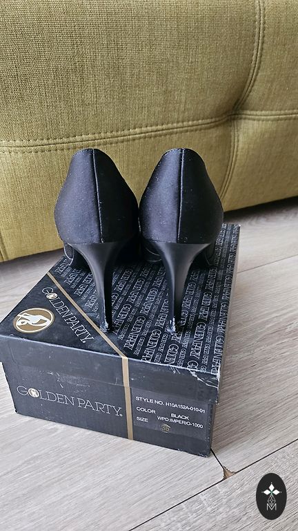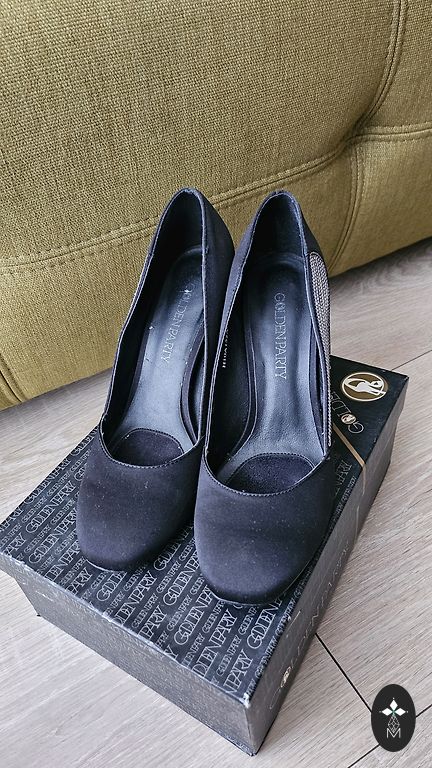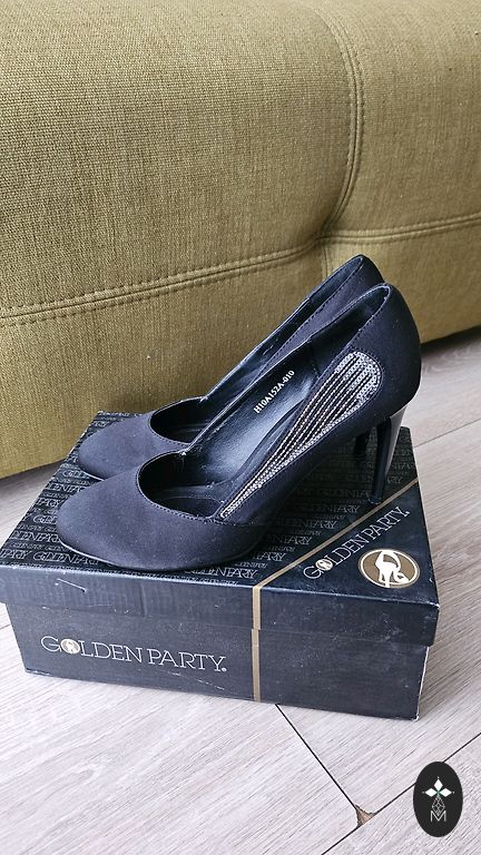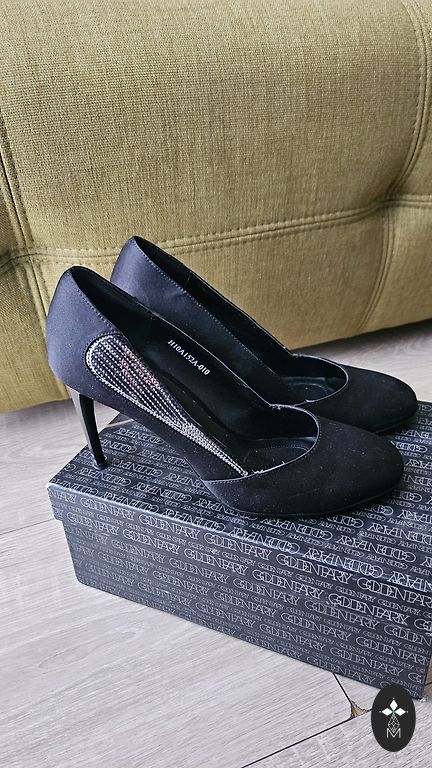 Элегантные черные туфли на высоком каблуке.