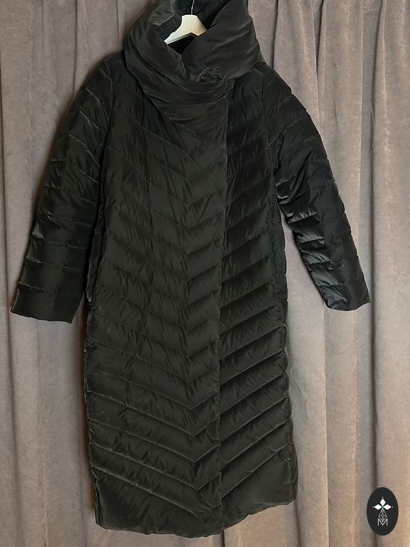 Labai gera būklė. Mažai naudota. Tinka 44/46 dydžiui. Ilgis 99, po pažastimis 61, liemuo 57, klubai 60, rankovė 47, plotis pečiuose 47.