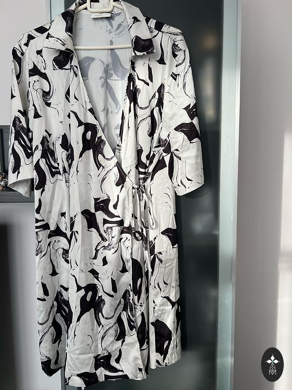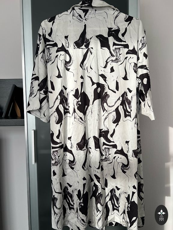 Nauja medvilninė suknelė-marškiniai. Ilgis 117 cm, krūtinės plotis 114 cm, dydis L.