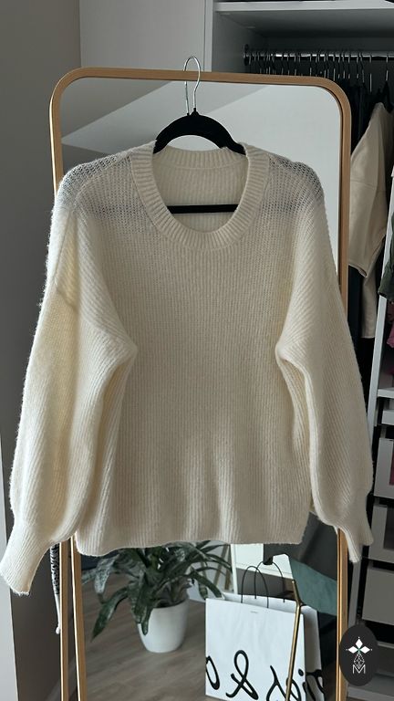 Ļoti silts džemperis ar interesantu augsto krāgu. Garums 47cm, krūšu apkārtmērs 100cm. Der arī uz S, ir nedaudz oversize.