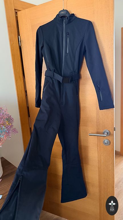 Ümar kaelus ja laiad reguleeritavad rihmad. Eesmine tõmblukuga tasku. Eesmine vööpaik kinnaste kinnitamiseks. Reguleeritav alumine osa tõmblukuga ja sisemine kaitsekiht hõõrdumise vältimiseks. Alumine osa tagant pikem kui eest - mugavuse tagamiseks suusasaabastega. Sisemine elastne sääris takjakinnituse ja nööpidega, et fikseerida jalanõud ja kaitsta lume ja külma eest. Eesmine tõmblukk-kinnitus.