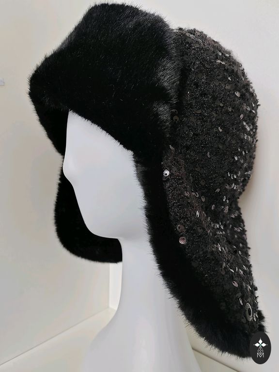 Jauna ūdeles (mink) cepure ar polārlapsas augšiņu. Pilnīgi jauna – ļoti mīksta, silta un eleganta. Iekšpusīte adīta, ērta un patīkama valkāšanai.