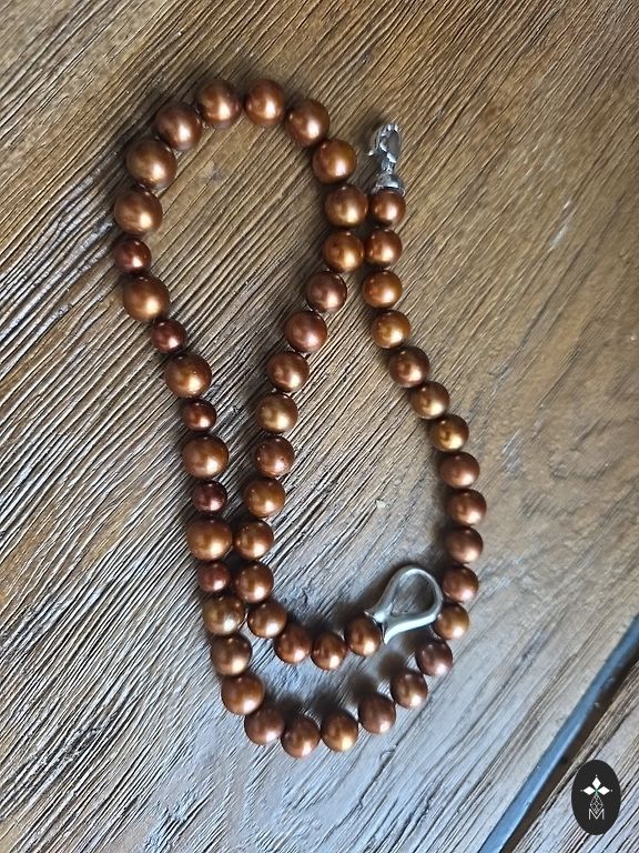 Unikalūs ir senoviniai rankų darbo karoliai. Natūralios molio perlas įvairių žemės tonų. Derina natūralią tekstūrą su elegantišku dizainu, todėl jie tampa puikiu akcentu tiek prie klasikinės suknelės, tiek prie paprastos palaidinės.