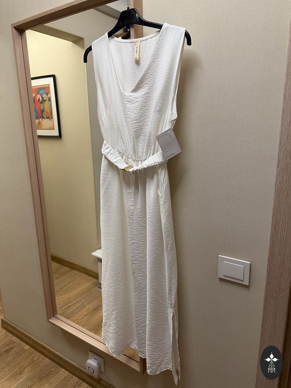 Фантастически красивое длинное платье в стиле ZIMMERMANN. С несколькими, но невероятно красивыми пуговицами по всей длине платья. Сзади молния. По бокам карманы, широкая пояс. От 160 до 175. Грудь до 90 см.