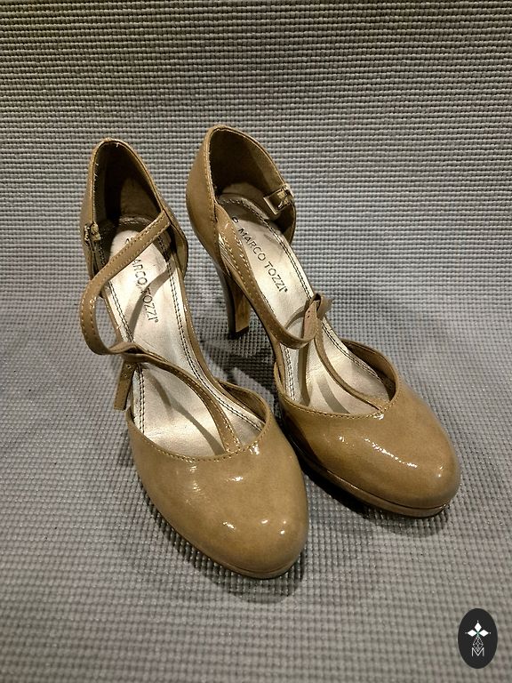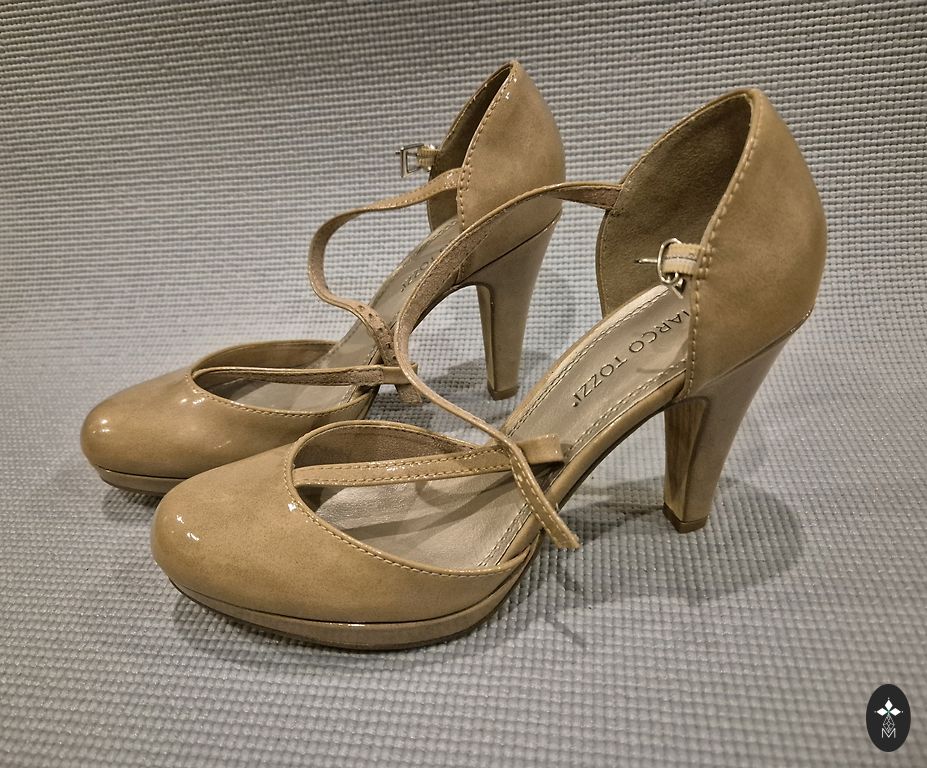 Beige, elegant high-heeled shoes