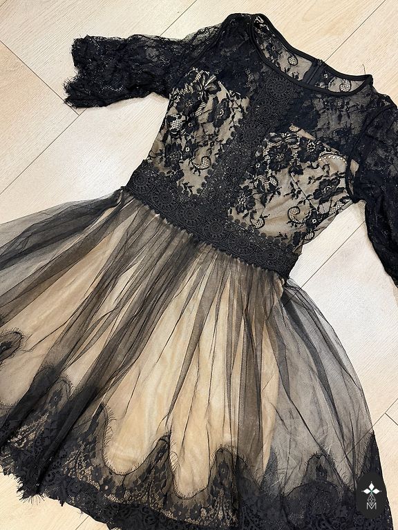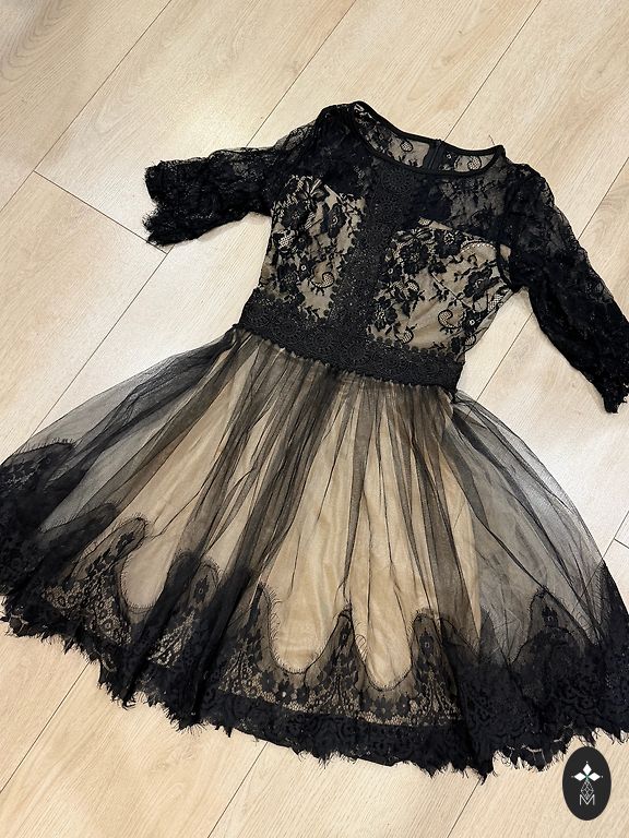 Izcilā stāvoklī ļoti eleganta, sievišķīga un grezna kleita ar aktuālo mežģīņu dizainu. Norādīts L, bet derēs S un mazam M izmēram. Iegādāta showroom.
