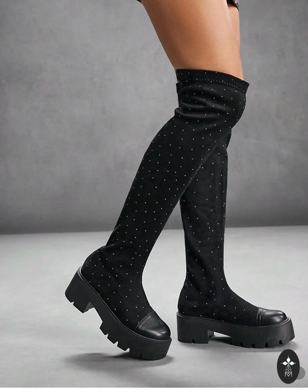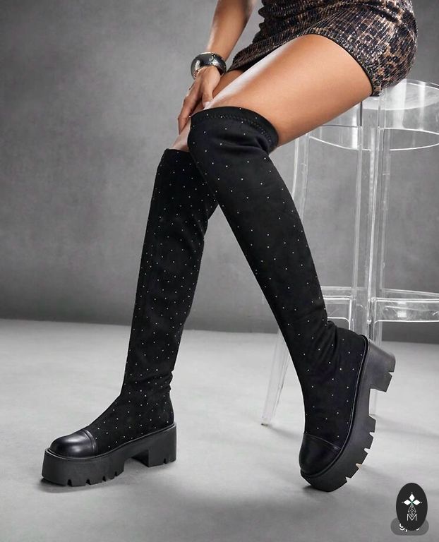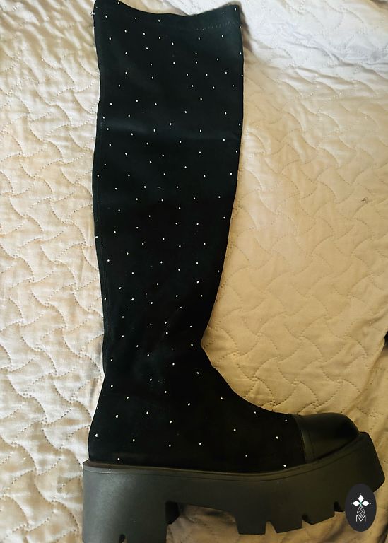 Nauji ilgi odiniai batai. Nenešioti. Su etiketėmis. JAV prekės ženklas. Pagaminti Kinijoje. Gana plati viršutinė dalis. Batų viršutinės dalies apimtis apie 45 cm.