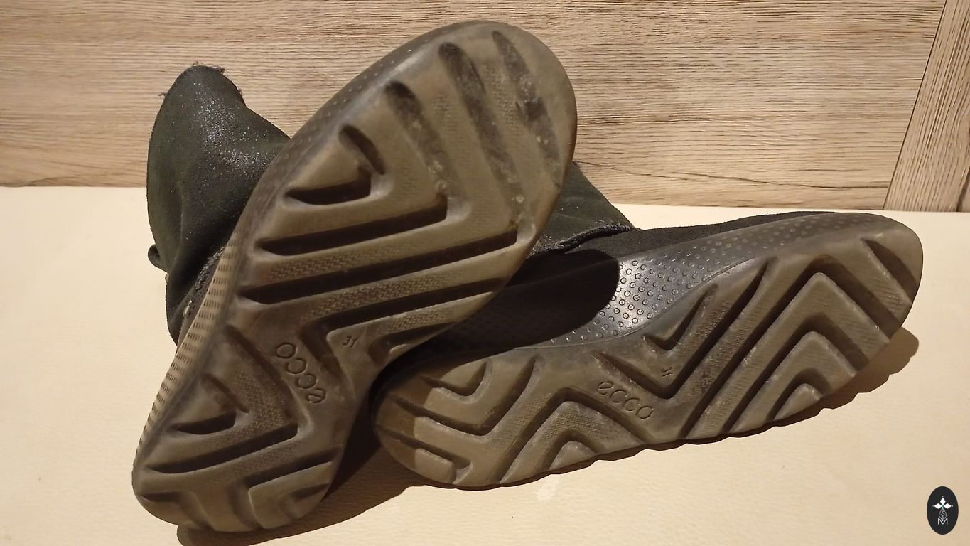 Batai uždėti tik kelis kartus, todėl padai nėra nusidėvėję. Batų pagrindinė dalis pagaminta iš odos, viršutinė dalis - iš zomšos. Jie turi šiltą, pūkuotą vidinę dalį. Batai užsegami užtrauktuku. Deja, vieną iš nedaugelio nešiojimo kartų atsirado nedideli įbrėžimai batų nosies dalyje.