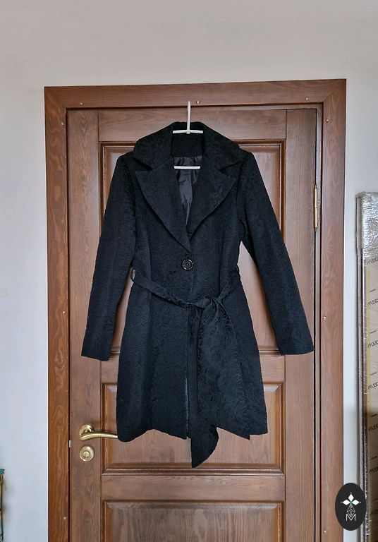 Beautiful and elegant, mid-length coat, collar naturally removable.