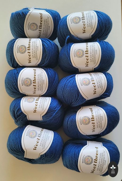 Aukštos kokybės mezgimo siūlai, šilkiniai ir elastingi liesti, ypač minkšti ir nedirginantys odos. Spalva – karališkai mėlyna su tamsiai mėlyna. 100 g x 9 nauji ir vienas neišbaigtas 82 g likęs iš projekto. Savo projektui (didelio dydžio megztinis) sunaudojau 920 g siūlų. 100 % merino vilna Kaina už 980 g Siųsiu su visa pakuote, + 1,85 Omniva/Dpd