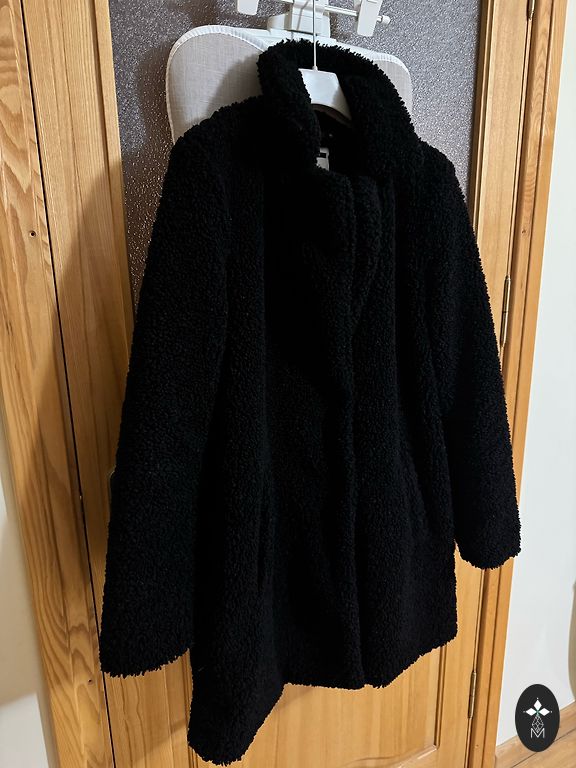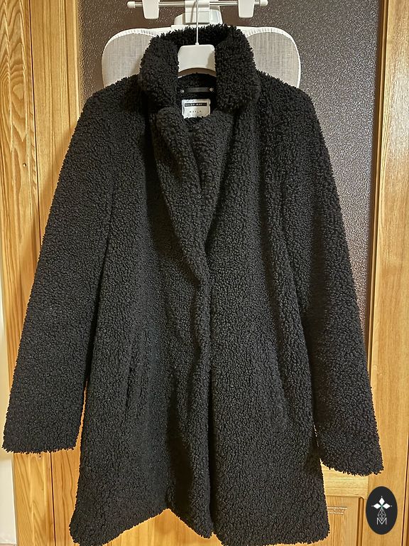 Mētelis 36-38.izmēriem, iekšā ar silto truša oderi, ārā vilka kažokādas kapuce. (Garums 102cm). Kažokāda ir nonemama, kas ļaus mazgāt mēteli vēlas mašīnā. Ideālā stāvoklī. Ļoti silts un smuks.